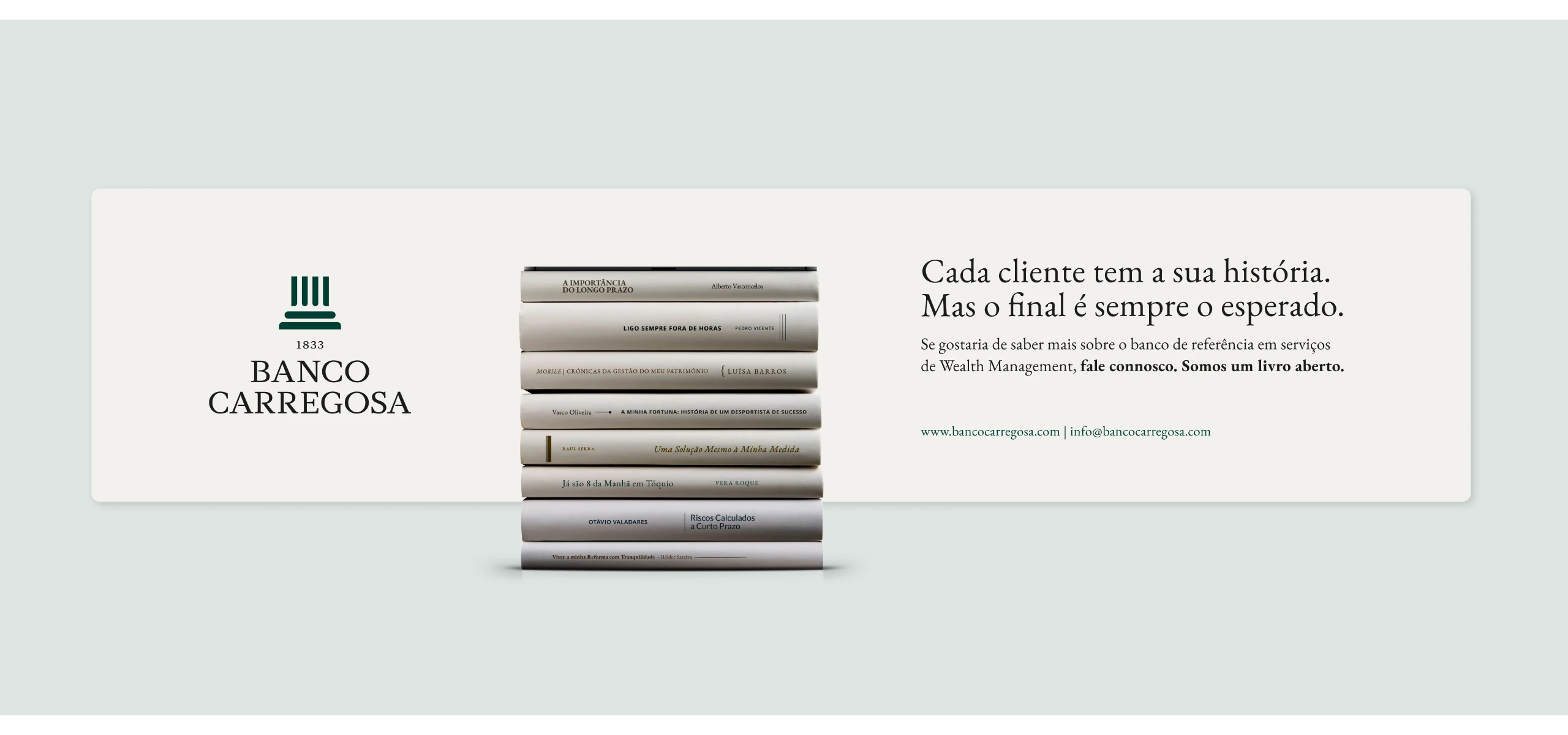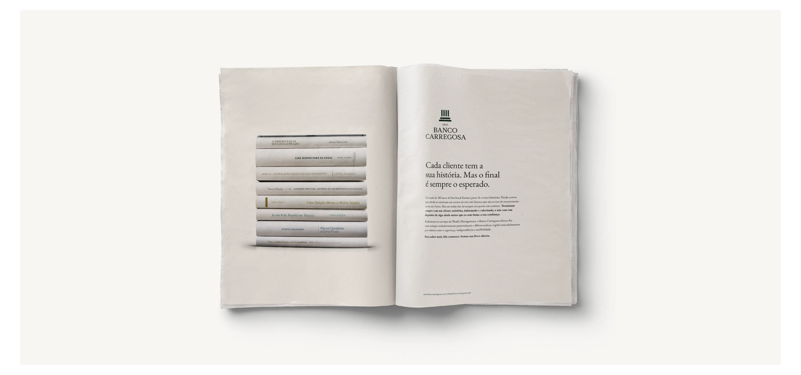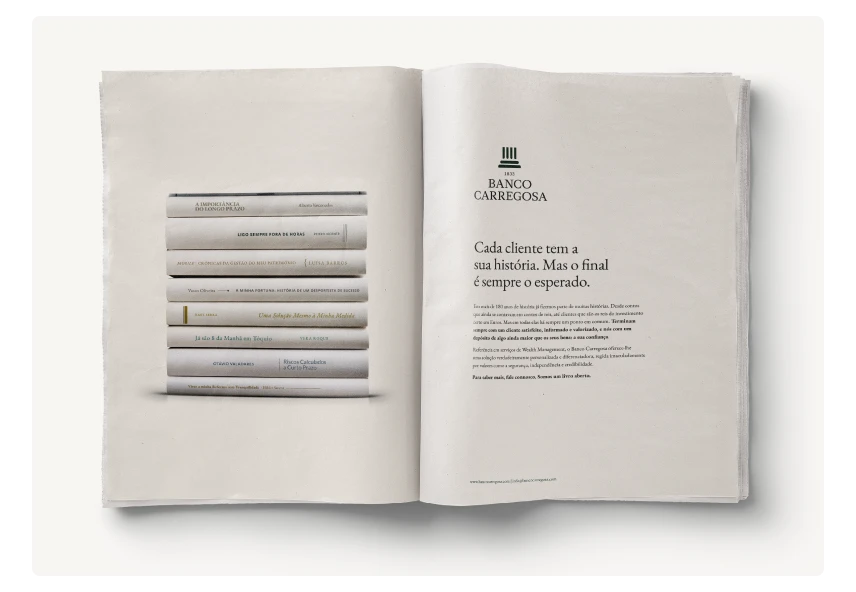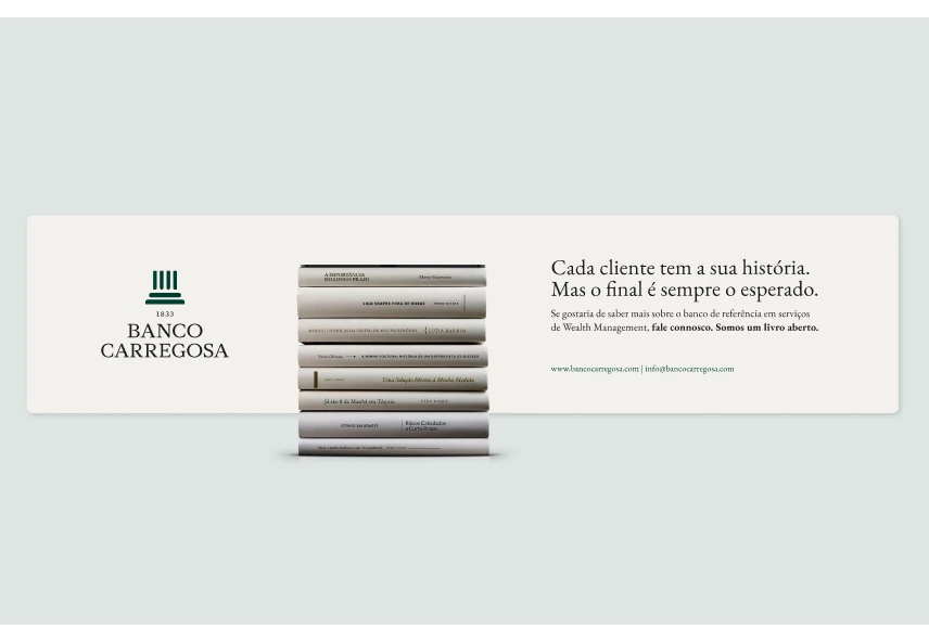 Este foi o headline criado para transmitir a solidez e credibilidade do Banco Carregosa, assim como o sentido de compromisso para com os seus clientes.
