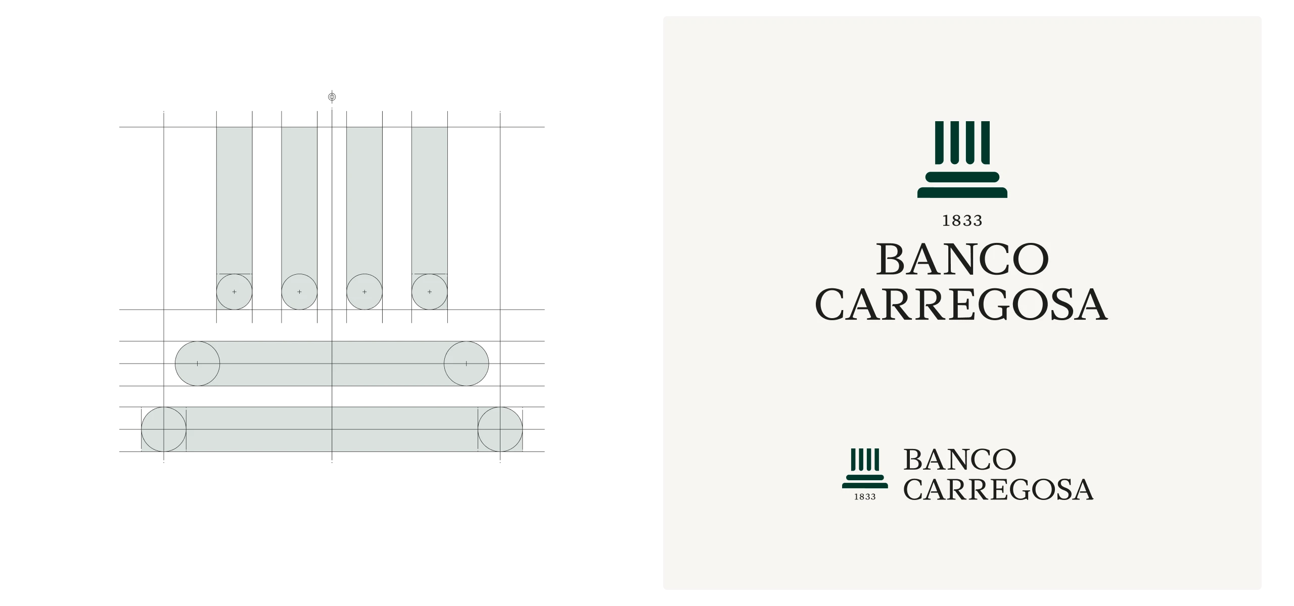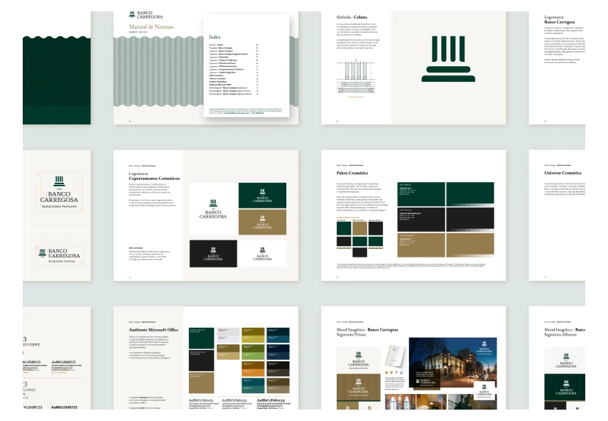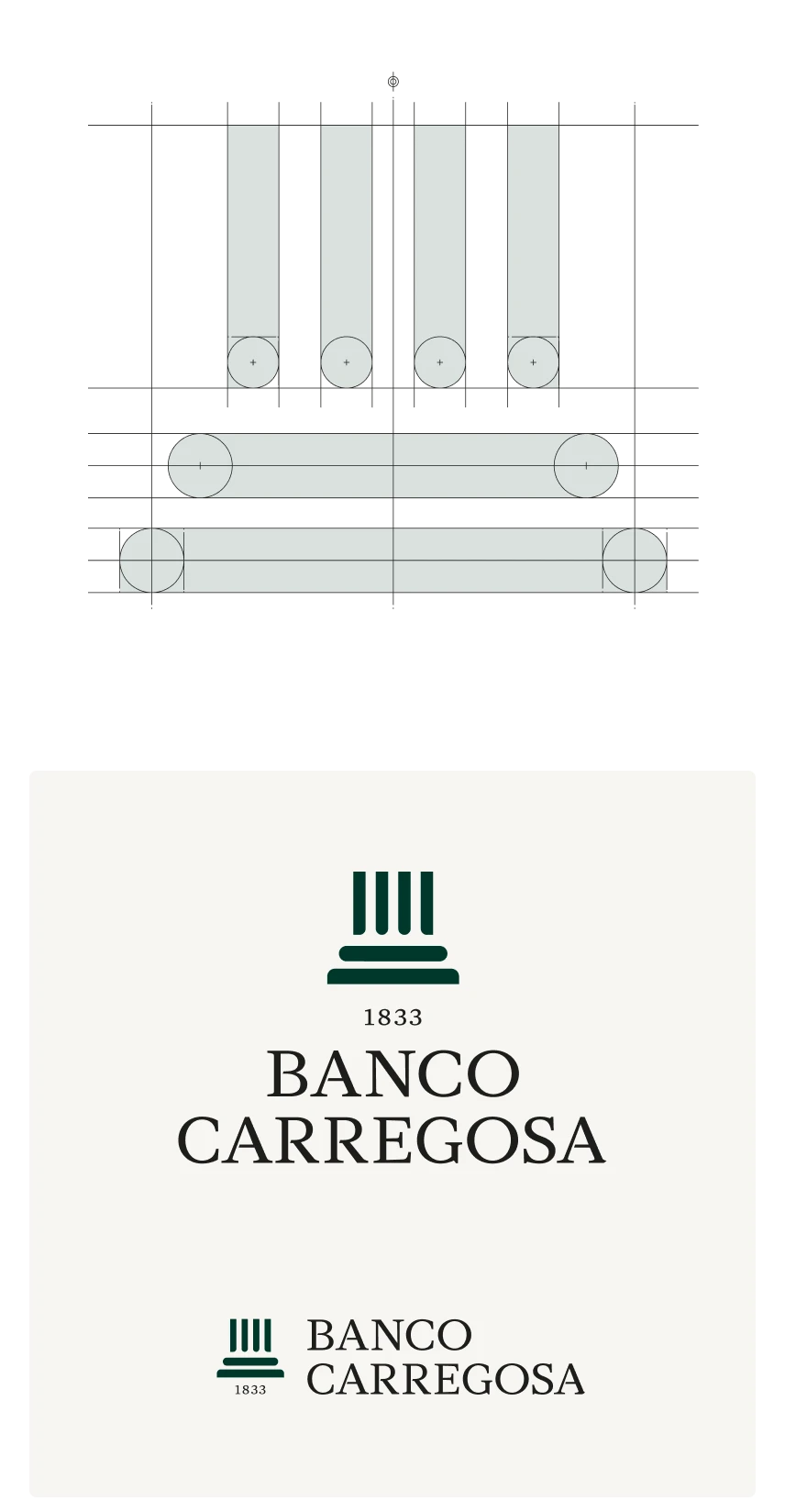 Depois de ser ter definido um sistema de Arquitetura de Marca Monolítico (do qual faz parte a marca Banco Carregosa e Banco Carregosa – Banqueiros Privados), avançou-se para a criação da nova identidade corporativa.