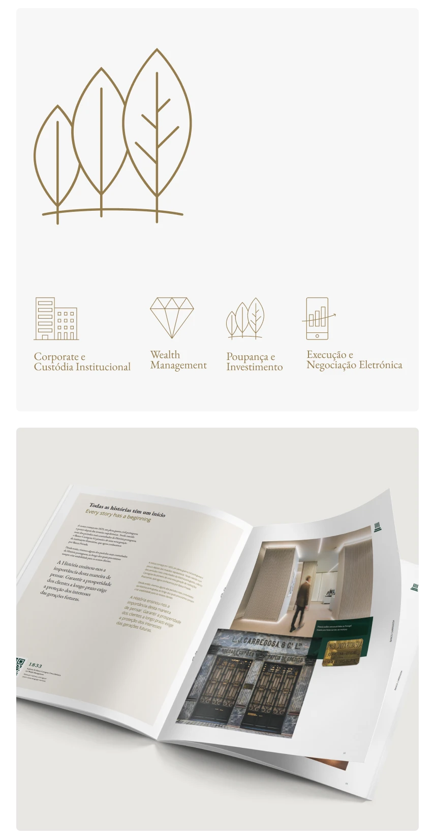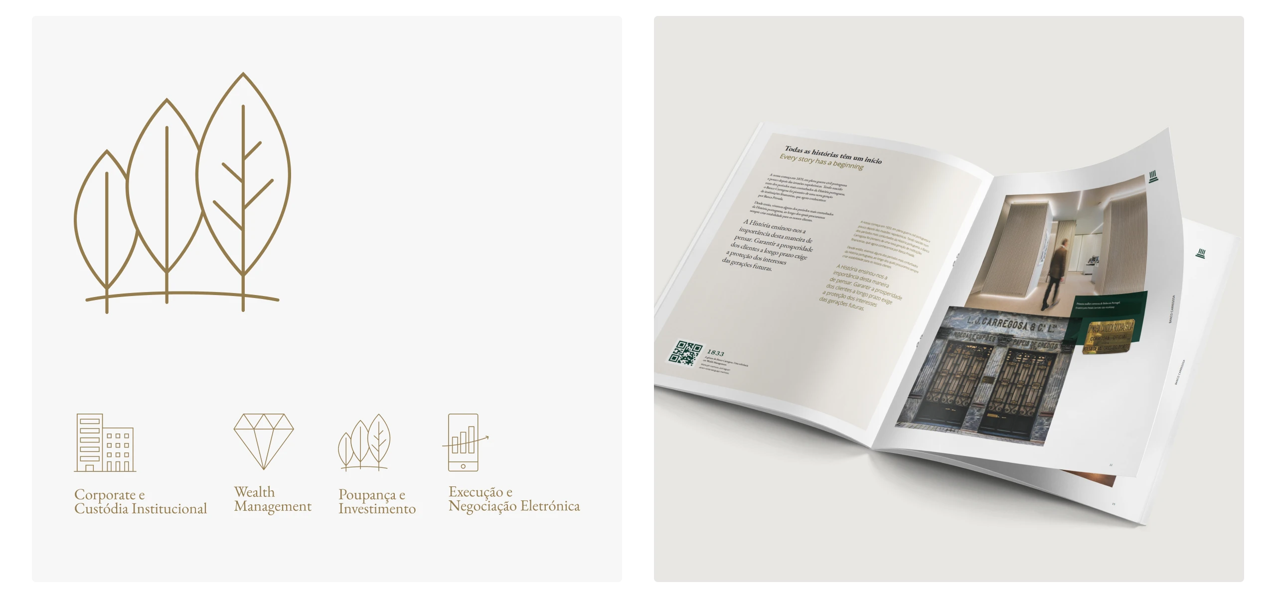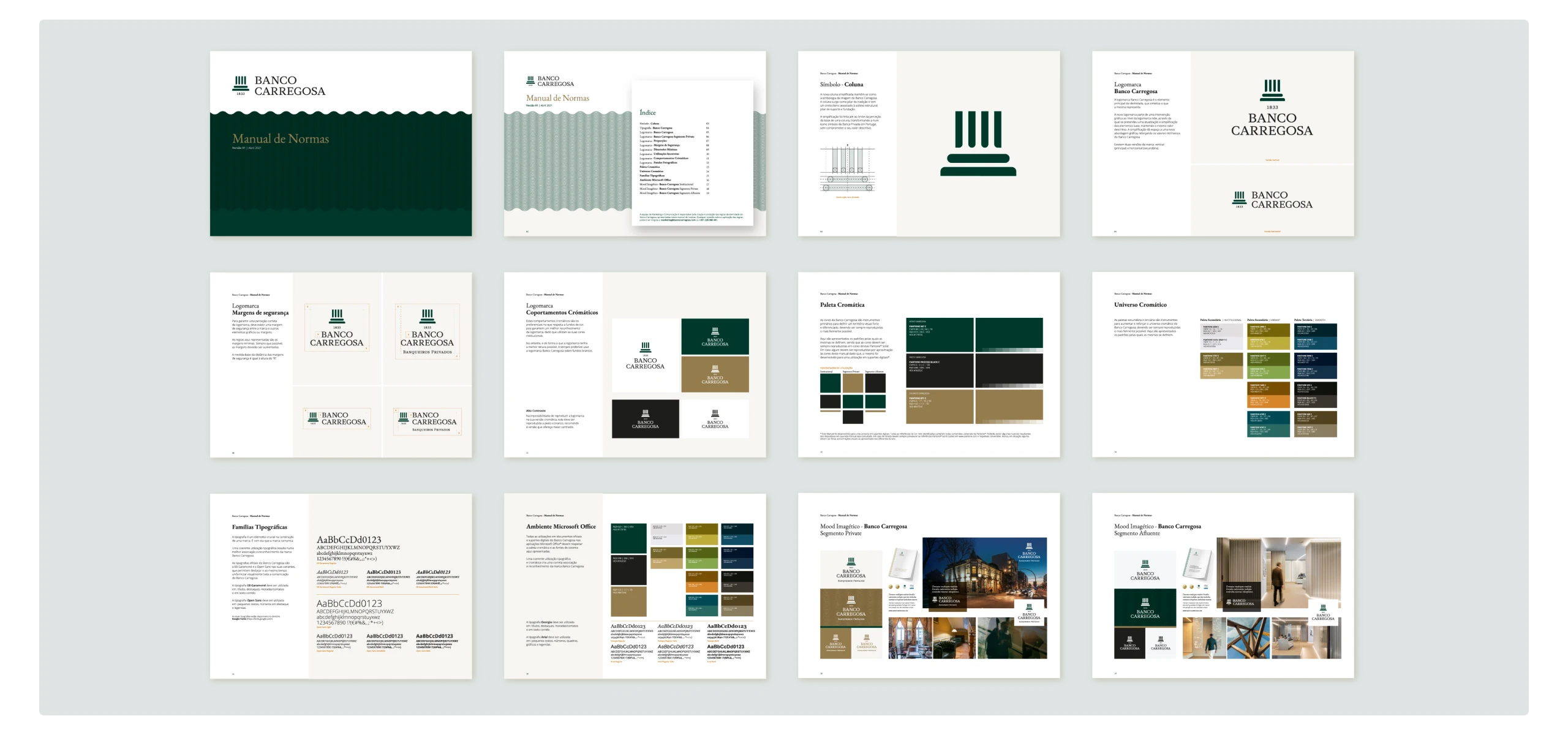 Depois de ser ter definido um sistema de Arquitetura de Marca Monolítico (do qual faz parte a marca Banco Carregosa e Banco Carregosa – Banqueiros Privados), avançou-se para a criação da nova identidade corporativa.