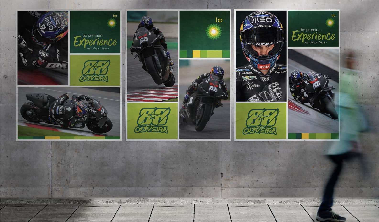 A linguagem de design equilibrou a identidade corporativa da bp com o espírito acelerado do MotoGP, resultando num ambiente que ressoou com os fãs da modalidade e amplificou o envolvimento com a marca bp no evento.