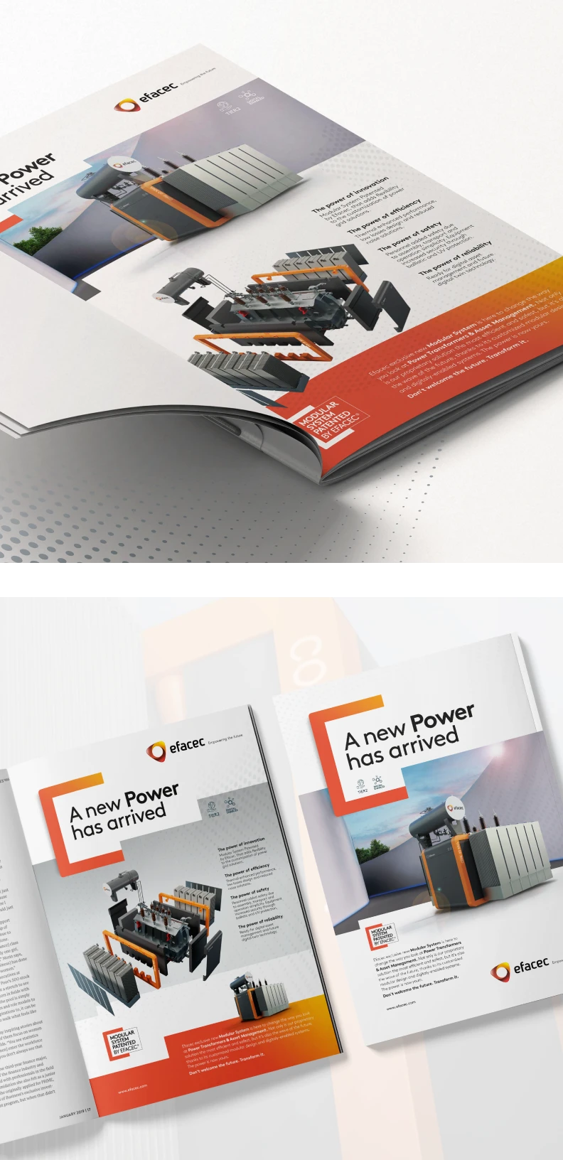 Under the concept “A New Power Has Arrived”, the launch campaign for the Core 40 MVA Power Transformer was created, a new modular transformer patented by Efacec.